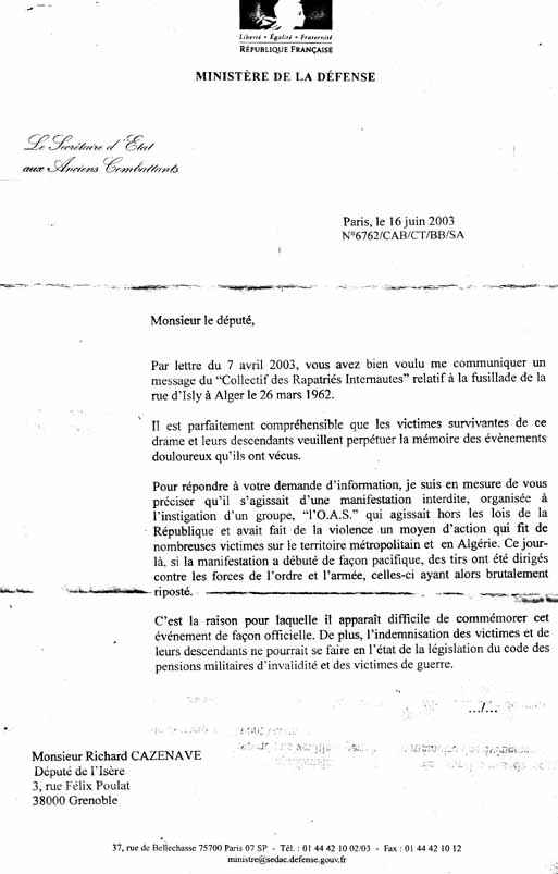 2) Personnellement, je préférerai un Mémorial de l'Algérie Française ou à la rigueur de l'Afrique du Nord, plutôt qu'un mémorial d'Outre-Mer où nous deviendrions une fois de plus les cocus de l'affaire. M. Rolando a très bien déchiffré le message : " circulez, il n'y a rien qui puisse vous concerner ".