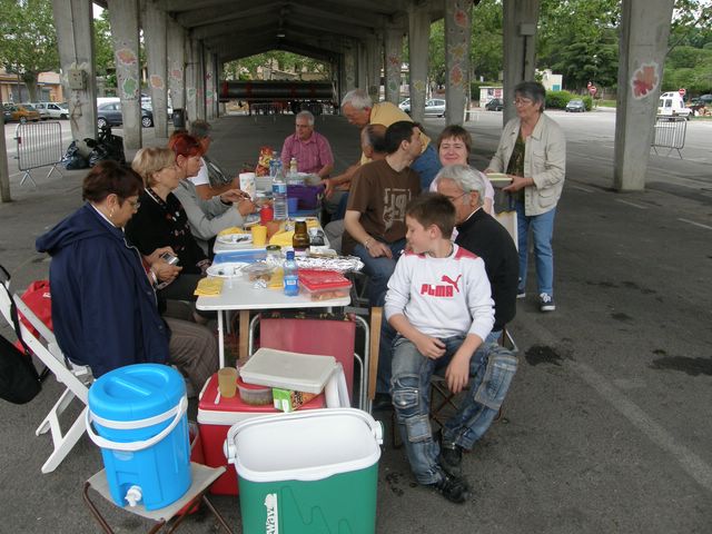 Cette année, (comme c'est déjà arrivé plusieurs fois), le temps n'a pas été clément. Les pluies torrentielles qui se sont abattues sur Uzès n'ont pas permis le déroulement de cette journée au camping d'Uzès. Au dernier moment, ce lieu de rassemblement a été déplacé à Saint Quentin de la Poterie (3km) dont il faut aussi remercier la municipalité pour la mise à disposition du Marché couvert.