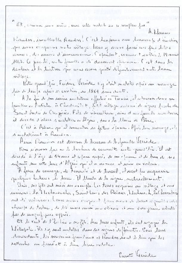 Aujourd'hui périodiquement, certains membres de cette belle famille retournent à Randon qui a retrouvé son nom arabe "Besbes" : Certaines terres familiales continuent d'être exploitées, d'autres sont abandonnées, d'autres ont été gagnées par les constructions du village.