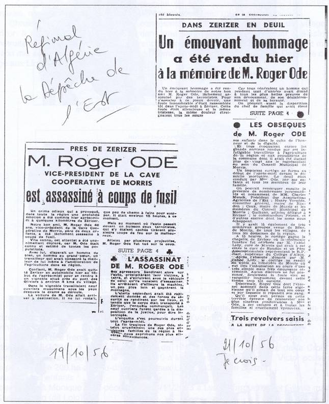 Victor, né le 6/7/1891 à Bône, fit la guerre de 1914/18 à Verdun. Décoré de la Croix de Guerre avec palme, il se maria le 13/12/1919 à Morris avec Marie Simon. Victor possédait une propriété de 200 ha au lieu-dit La cage aux Lions, à 2 km de Zérizer.