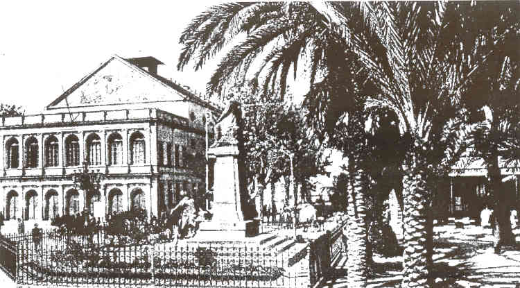 L'ancien théâtre, et à droite, derrière la palmeraie, le Café Saint-Martin