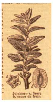 cultivée dans les régions méditerranéennes pour ses fruits ( Jujubes, drupes rouges à pulpe