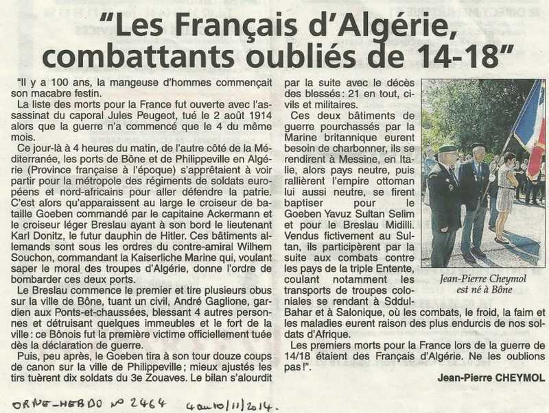 Tous les morts de 1914-1918 enregistrés sur le Département de Bône méritaient un hommage qui nous avait été demandé et avec Jean Claude Stella nous l'avons mis en oeuvre.