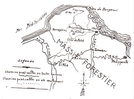 Comme nous le savions déjà cette jeune et charmante enfant n’était pas de La Calle, mais résidait au Tarf tel que notre copain nous l’avait enfin révélé. Mais il faut dire que ce petit village situé sur la route de Bône, se trouvait à une distance notable de près de 18 km de notre cité. A cette époque compte-tenu des moyens de communication, on peut dire sans exagérer que ce n’était pas la porte à côté, surtout, pendant la chaleur torride de l‘été, ce qui pour autant n’avait pas empêché notre valeureux Roméo, de partir ce jour-là perché courageusement sur une vieille bécane dite de course empruntée à son frère aîné.