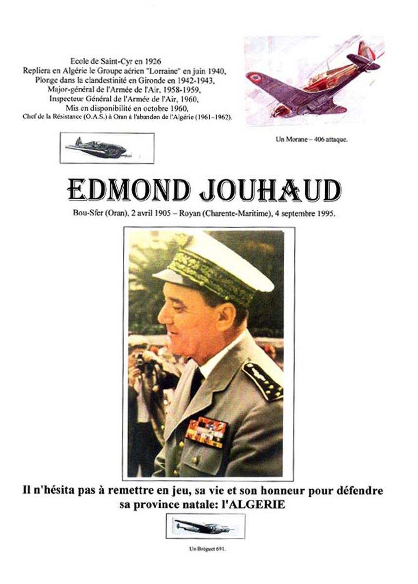 J’ai connu plusieurs anciens combattants de l’Algérie française. Certains étaient des amis : le général Edmond Jouhaud, le seul pieds-noirs du quarteron de généraux du putsch d’Alger d’avril 1961. Je lui avais été présenté, lors d’un méchoui à Royan, par mon ami Marcel Bouyer. Pour rire, le général Jouhaud m’avait décerné le titre de pieds-noirs d’honneur pour mes écrits en faveur des harkis et de l’Algérie française. Le colonel Pierre Château-Jobert dit « Conan » que j’ai vu à plusieurs reprises chez mon ami Jean Briard. Le commandant Henry-Jean Loustau qui fut président de l’Union Nationale des Parachutistes. Marcel Bouyer, résistant, député UDCA (5) et co-fondateur du réseau « Résurrection-Patrie » de l’OAS-métro. Un engagement qui lui vaudra six années de prison.