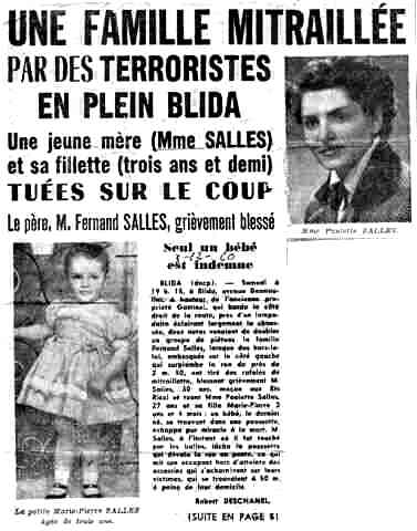 Notre famille n'a pas été épargnée et je vous joins l'article de presse concernant l'assassinat à Blida, de ma jeune tante et de sa fillette (son mari et son fils y ont miraculeusement réchappé).