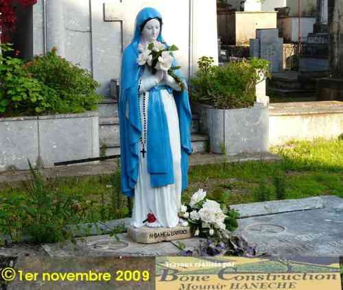 Vierge, familiale, restaurée et fleurie par "le groupe des voyages Bartolini", travaux réalisés par M. Mounir Hanèche