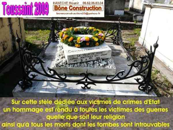 Je me souviens, qu'après avoir mis sur mon site les photos du cimetière de Bône, " des horreurs " ; le Consulat français de Bône et les associations affiliées ne se sont pas privées pour me tomber dessus, au point que j'avais même enlevé le site du cimetière. (Ce site a été remis en service le mois dernier). http://www.piednoir.net/taddo/