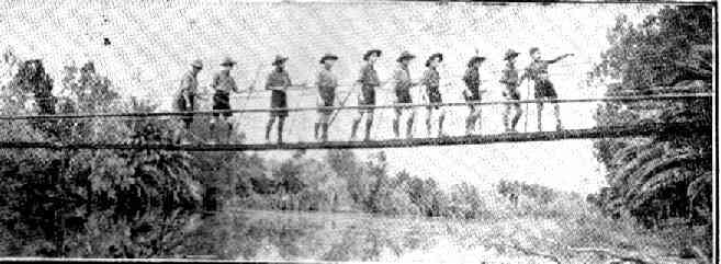 Par l'ingéniosité et l'habileté manuelle le scout se doit de faire face à tous les obstacles et à trouver le ou les moyens pour les franchir avec les moyens simples dont il dispose : vêtements, cordages, branches, etc...