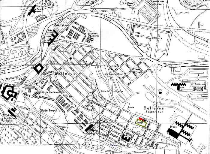 En rouge le terrain et le local des Scouts de la 1ère Constantine.