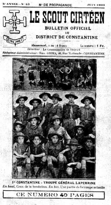 Dans son numéro de juin 1933, Le Scout cirtéen, fête les 10 ans de la troupe Général Laperrine, 1ère Constantine, en soulignant que c'est la plus ancienne troupe d'Afrique du Nord.